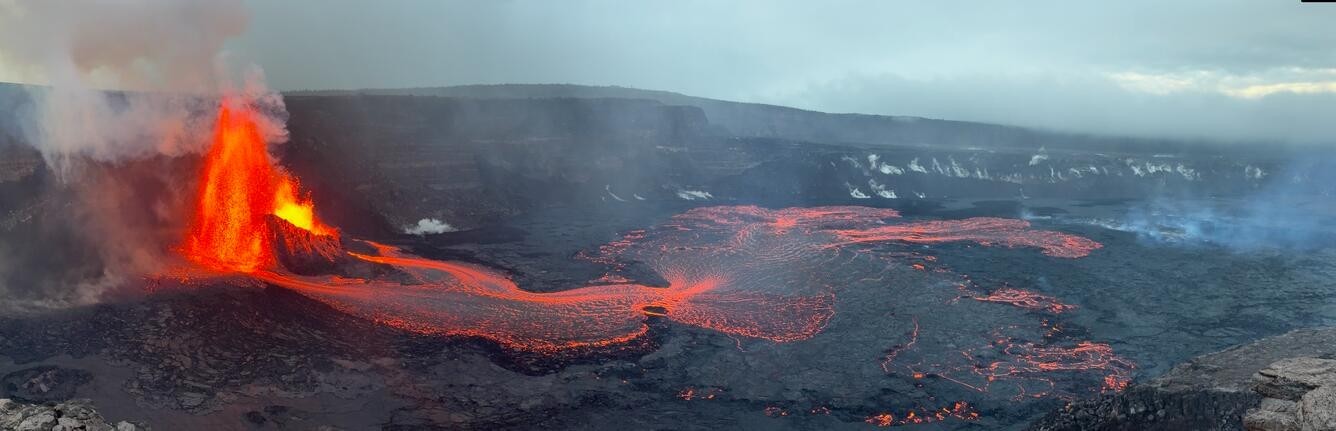 Episodes of Halemaʻumaʻu lava fountaining since December 23, 2024, have continued for 13 hours to 8 days and episodes have been separated by pauses in eruptive activity lasting from less than 24 hours to 12 days. While episode 12 began with intermittent eruption at 7:30 a.m. HST, continuous eruption did not begin until 12:45 p.m. HST and lasted for just under 22 hours.