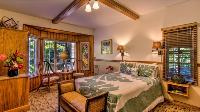 The Aloha King I room is an upstairs unit. It features a king bed, private bath, heated towel warmer, bathrobes, garden views, and central heat. Can accommodate up to 2 guests. Reg. Rate $205 / night + tax. Discount Pricing may be available. Please inquire via our reservation form and we will let you know the Best Rate.