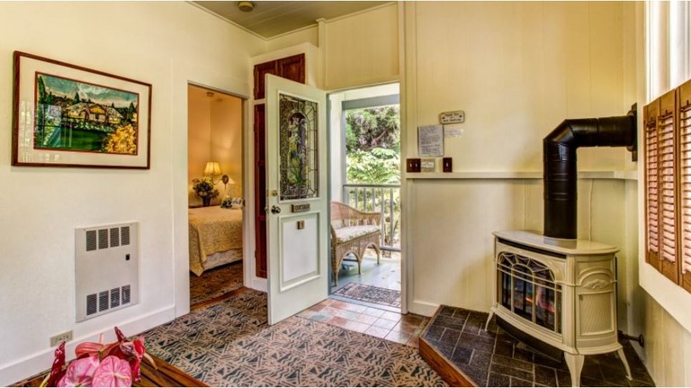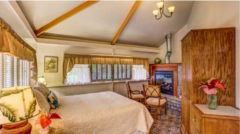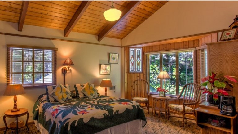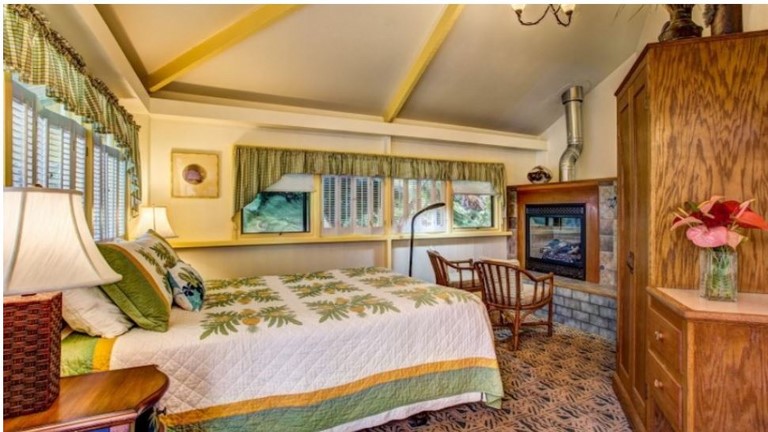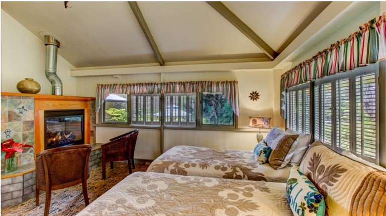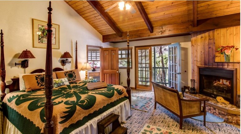 The Honeymoon Aloha Room is an upstairs unit and features a king size four poster bed, private bath, two person double headed shower, heated towel warmer, bathrobes, wood-burning fireplace, and private balcony. The Honeymoon Deluxe Room can accommodate up to 2 guests. Reg. Rate $225/ night + tax. Discount Pricing may be available. Please inquire via our reservation form and we will let you know the Best Rate.