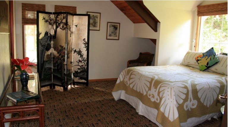 The Aloha Twin Room, and upstairs unit, features two twin beds (which can be combined into a custom king), private bath, heated towel warmer, bathrobes, garden views, and central heat. Rate is based on double occupancy. Reg. Rate $205/ night + tax. Discount Pricing may be available. Please inquire via our reservation form and we will let you know the Best Rate. Extra guests (ages 2 and older) are $20.00 per person. Can accommodate up to 4 guests with floor futons for any additional guests.