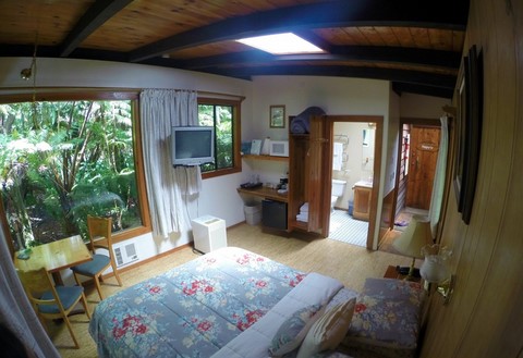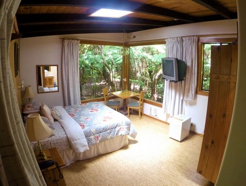 The Corner Window Suite makes you feel like you’re waking up in a tree house! These beautiful, eco-friendly rooms feature hand crafted wooden touches and huge picture windows looking out to the surrounding native fern forest.