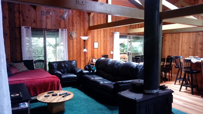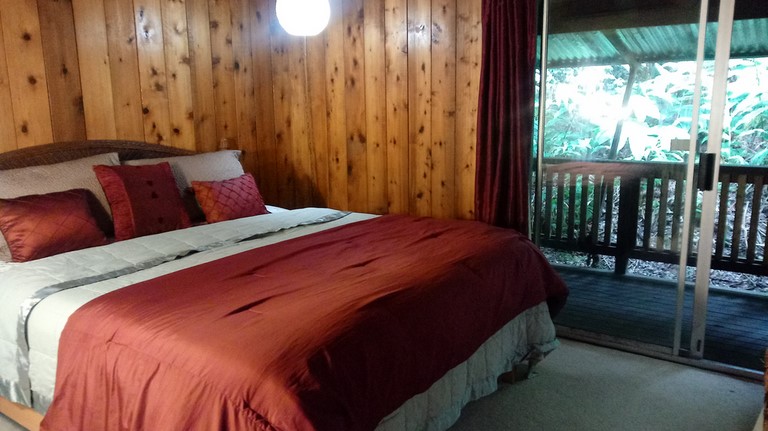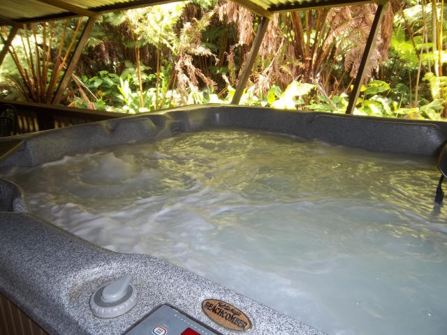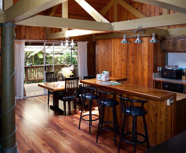 The Kekoanui Lodge is a cozy, spacious, and very private unique Timber Pole House that was built based on the concept of a Japanese Country Home. The massive lumber used to build the house and the heights of the ceiling make this a wonderful timber pole house that you and your family will definately be very comfortable in. Nestled in the lush green rainforest of Volcano, just a short 3 minute drive to Hawaii Volcanoes National Park. FREE WIFI. Extra Deep JACUZZI . Wrap-Around Covered Deck. Washer & Dryer.